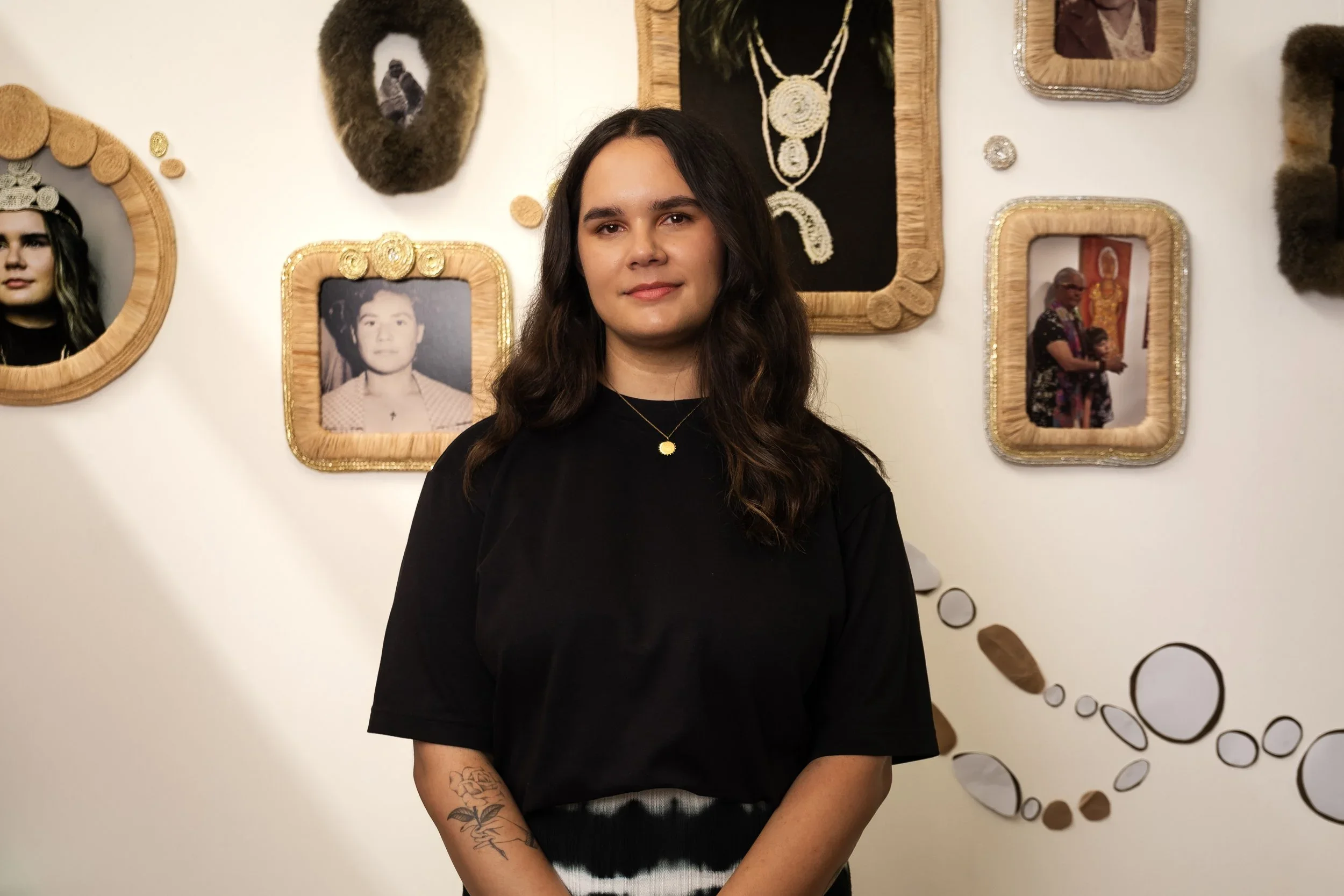 Carly Tarkari Dodd is a Kaurna, Narungga, and Ngarrindjeri artist and curator whose practice centres on weaving, jewellery, sculpture, and cultural storytelling. Taught traditional Ngarrindjeri weaving techniques by Aunty Ellen Trevorrow at a young age, Dodd continues this legacy by combining ancestral knowledge with contemporary materials to create powerful objects of cultural resilience. Her work explores themes of First Nations activism, sovereignty, and identity, often juxtaposing Indigenous experience with the ongoing impacts of colonisation.Through adornment and regalia, Dodd highlights the strength and beauty of cultural continuation, transforming materials like raffia, ribbon, and fabric into bold wearable statements. Her work has been featured on the David Jones Indigenous Fashion Projects Runway at Australian Fashion Week, in Vogue Australia, and across national and international exhibitions. In 2023, she was a finalist in the MAKE Award: Biennial Prize for Innovation in Australian Craft and Design and in 2025, she was named a finalist in the prestigious Rigg Design Prize.